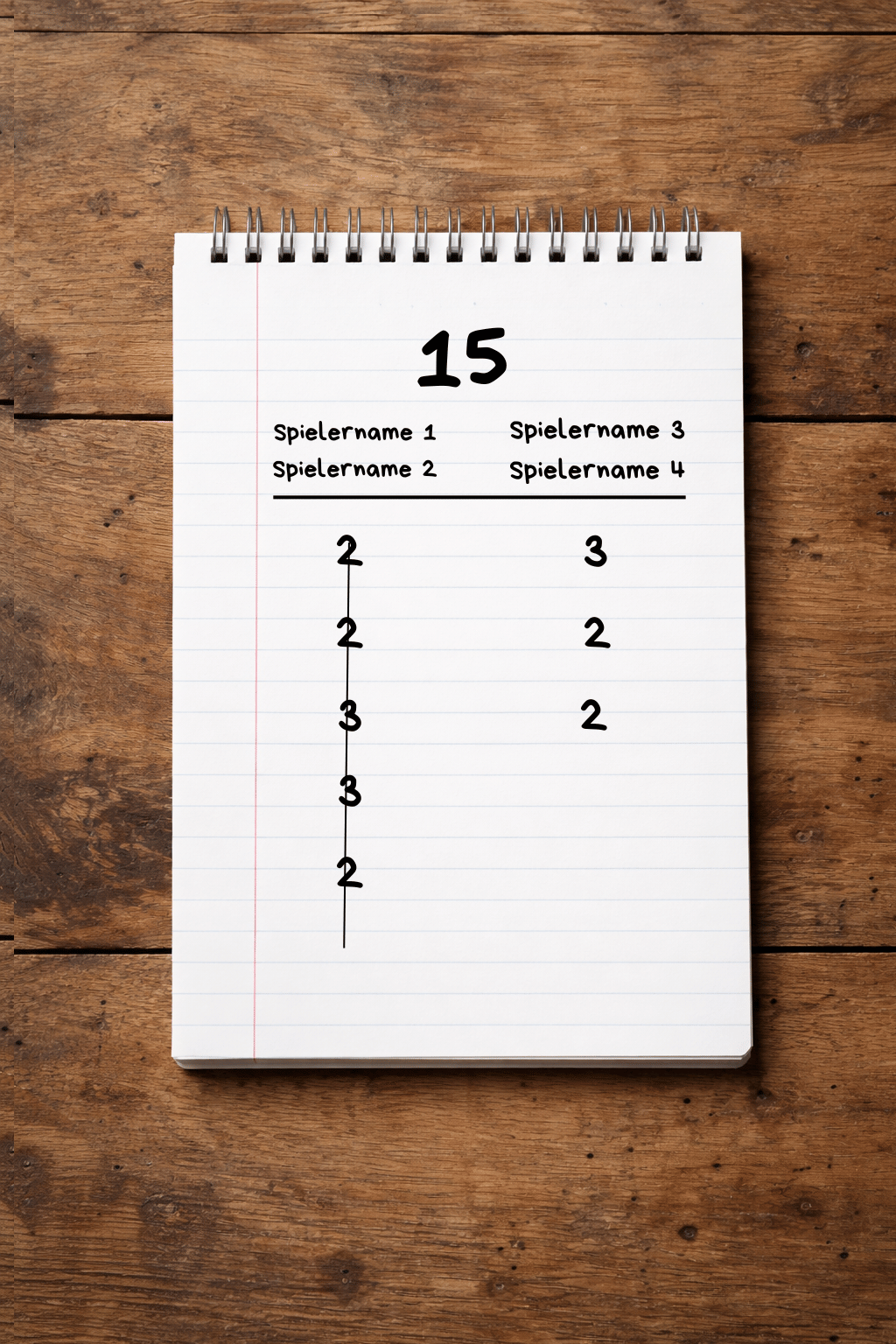 In diesem Beispiel wird bis 15 Punkte gespielt und es wird zu viert gewattet.